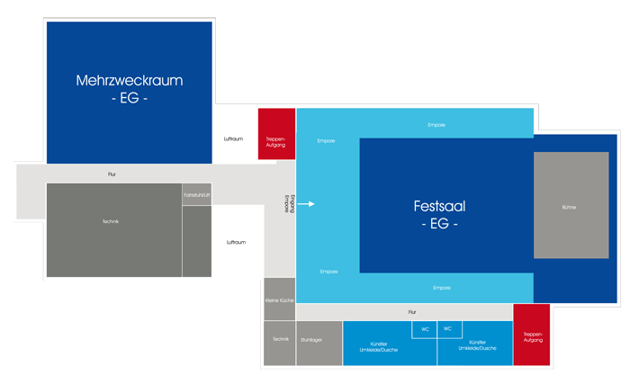 Bühne: 98,2m² (Holzdielenbelag, dübelbar)